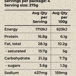 Free Range Chicken Thigh (25%), Water (22%), Pastry (Butter (Cream (Milk)), Wholemeal Spelt Wheat Flour, White Spelt Wheat Flour, Water, Salt, Vinegar) (16%), Carrot (7%), Onion (7%), Celery (6%), Peas (6%), Cream (Milk), Extra Virgin Olive Oil, Tapioca Flour, Wholegrain Mustard, Garlic, Vegetable Stock (Salt, Corn Flour, Sugar, Extra Virgin Olive Oil, Parsley, Turmeric, Celery, Tomato, Onion, Garlic, Pepper, Nutmeg), Salt, Pepper. Contains Milk, Wheat, Gluten.