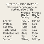 Vegetable Ragu (45%) [Tomato Passata, Eggplant, Crushed Tomatoes, Zucchini, Water, Carrot, Onion, Celery, Green Olives, Extra Virgin Olive Oil, Garlic, Tamari (Soy), Red Wine Vinegar, Salt, Vegetable Stock Powder, Ground Bay Leaves], Cheese Sauce (36%) [Ricotta (Milk), Milk, Shredded Cheddar Cheese (Anti-caking agent (Cellulose), (Milk))], Lasagne Sheets (18%) [Wheat Flour, Water, Wheat Gluten, Cornflour, Eggs, Salt]